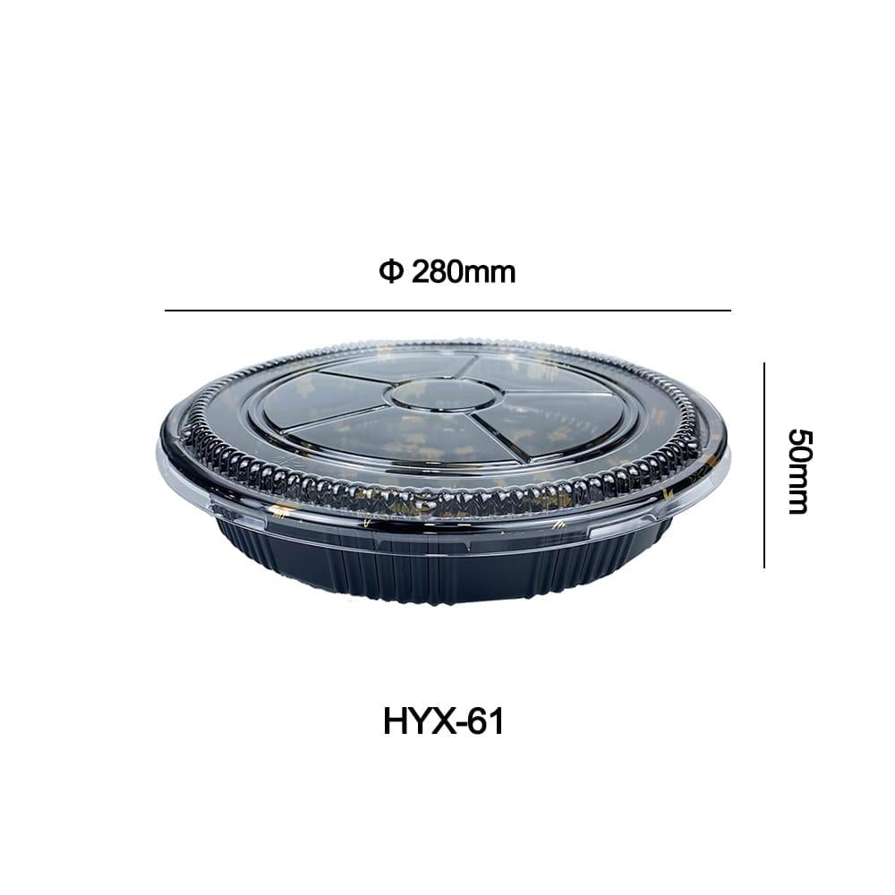 صحن تقديم مقسم للبارد والحلى وورق عنب أسود مع غطاء شفاف، مصمم لحفظ وتقديم الأطعمة الباردة بأناقة وجودة عالية. مصنوع من بلاستيك متين وآمن غذائيًا، مما يجعله مثاليًا لتقديم الحلويات 🍰، السلطات 🥗، وورق العنب 🍃. يتميز بتصميم دائري أنيق مع غطاء شفاف محكم، يحافظ على نضارة الطعام ويمنع التسرب، مما يجعله خيارًا مثاليًا للمطاعم، الكافيهات، والمنازل.